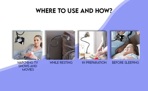 EXCELLENT HOLDER : The clip on holder is attached to any desk, bed headboard, chair, wall panel gluing to dashboard or any smooth surface.