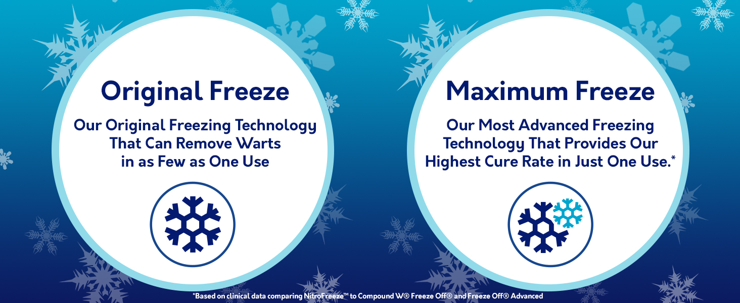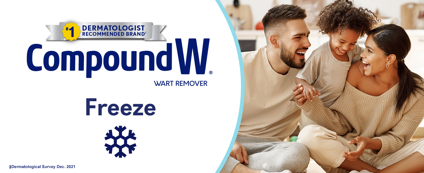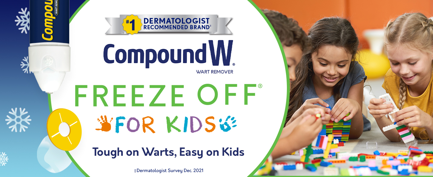 Treat your at home! Compound W Freeze Off starts working instantly and effectively removes common and plantar in as few as 1 treatment. Freeze Off is safe and easy to use. From the #1 most trusted and dermatologist-recommended removal brand*, the ultra-precision applicator tip controls the contact area to freeze off the and is similar to the freeze method that many doctors use to remove . Freeze Off freezes the on the spot and usually causes the to fall off within 10-14 days. Safe for use by adults and children 4 years of age or older. *National Consumer Panel 52 Week Data: 1/28/2018, 1/27/2019, 1/26/2020 and IQVIA Claim Substantiation Validation Statement, 12/11/18 – 11/30/19.